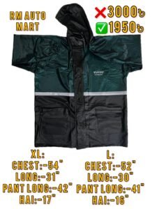 🌧️ বৃষ্টি হোক আর ঝড়, এখন থাকুন সম্পূর্ণ সুরক্ষিত RM AUTO MART-এর হাই কোয়ালিটি রেইনকোট সেটের সাথে! 💥 পুরো সেটে পাচ্ছেন — জ্যাকেট + প্যান্ট 🔥 ওয়াটারপ্রুফ ম্যাটেরিয়াল 🧥 স্টাইলিশ ডিজাইন ✅ ক্যাশ অন ডেলিভারি 🚚 সম্পূর্ণ চার্জ ফ্রি হোম ডেলিভারি