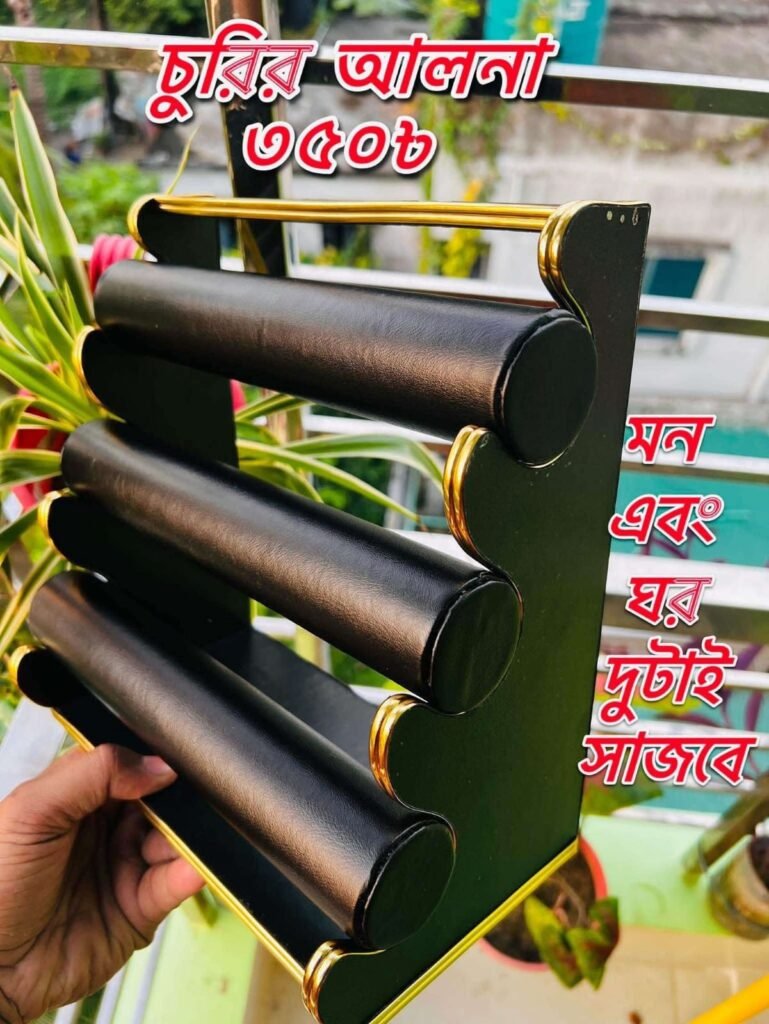💫 চুড়ির আলনা (Bracelet & Bangle Organizer)মন ও ঘর দুটোকেই সাজাবে এই দারুন চুড়ির আলনা!আপনার প্রিয় চুড়ি, বালা, ব্রেসলেট কিংবা ঘড়িগুলোকে সুন্দরভাবে রাখার জন্য এই চুড়ির আলনা হতে পারে পারফেক্ট সমাধান। স্টাইলিশ ডিজাইন ও প্রিমিয়াম কোয়ালিটির কারণে এটি শুধু আপনার সাজঘরের সৌন্দর্যই বাড়াবে না, বরং জিনিসপত্র খুঁজে পাওয়া সহজ করবে।🧿 পণ্যের বৈশিষ্ট্য:উপাদান: হাই-কোয়ালিটি সিনথেটিক লেদার ও স্টিল ফ্রেমরঙ: ব্ল্যাক ও গোল্ড কম্বিনেশনধারণ ক্ষমতা: একসাথে একাধিক চুড়ি বা ব্রেসলেট রাখা যাবে (৩ লেয়ার ডিজাইন)ডিজাইন: এলিগ্যান্ট ও কমপ্যাক্ট — যেকোনো ড্রেসিং টেবিল বা শোকেসে মানানসইব্যবহার:চুড়ি, বালা, ব্রেসলেট বা ঘড়ি সাজানোর জন্যগিফট আইটেম হিসেবেও দারুন পছন্দ---🌟 কেন ব্যবহার করবেন:চুড়ি বা ব্রেসলেট হারানোর ঝুঁকি কমায়ঘরকে করে সুন্দর ও গোছানোপ্রফেশনাল জুয়েলারি শপ বা অনলাইন লাইভ সেলের জন্য আদর্শ ডিসপ্লে স্ট্যান্ডদীর্ঘস্থায়ী ও টেকসই কোয়ালিটি
